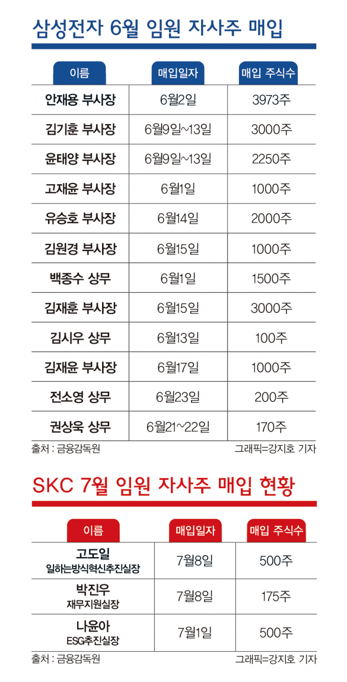 "쌀 때 사자" 삼성전자·SKC 등 자사주 매입 나선 임원들