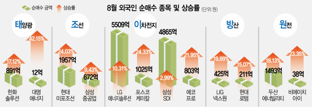 8월 외국인 순매수 기조 속에 주가가 급등했던 태조이방원 종목들/서울경제DB
