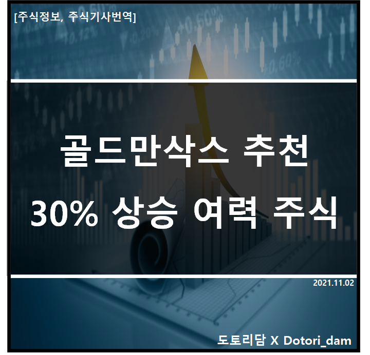 1. 골드만삭스에서 추천하는, 30%이상의 상승 가능성이 있는 주식을 가져왔다.