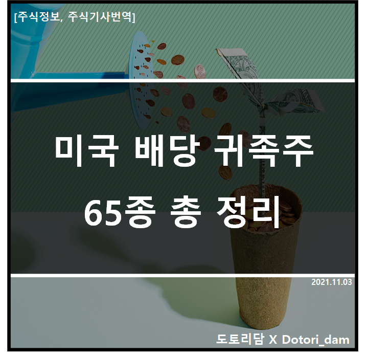 1. 25년 이상 배당금을 증가시킨 65종의 주식을 정리하였다.