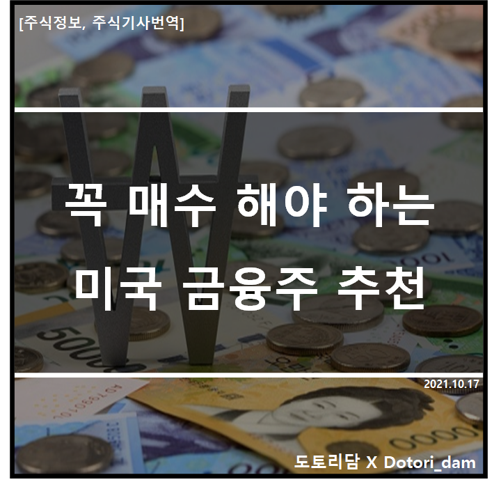 1. 한국 주식과는 다르게 미국 주식에서 금융주들의 고공행진이 이어지는 가운데 다음 3 종목을 추천한다고 한다.